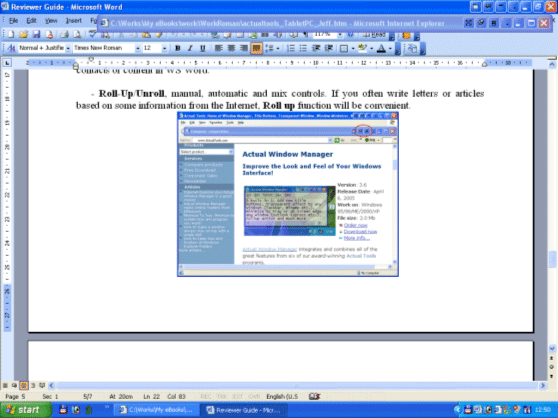 Roll-Up/Unroll, manual, automatic and mix controls. If you often write letters or articles based on some information from the Internet, the Roll up function will be convenient.
